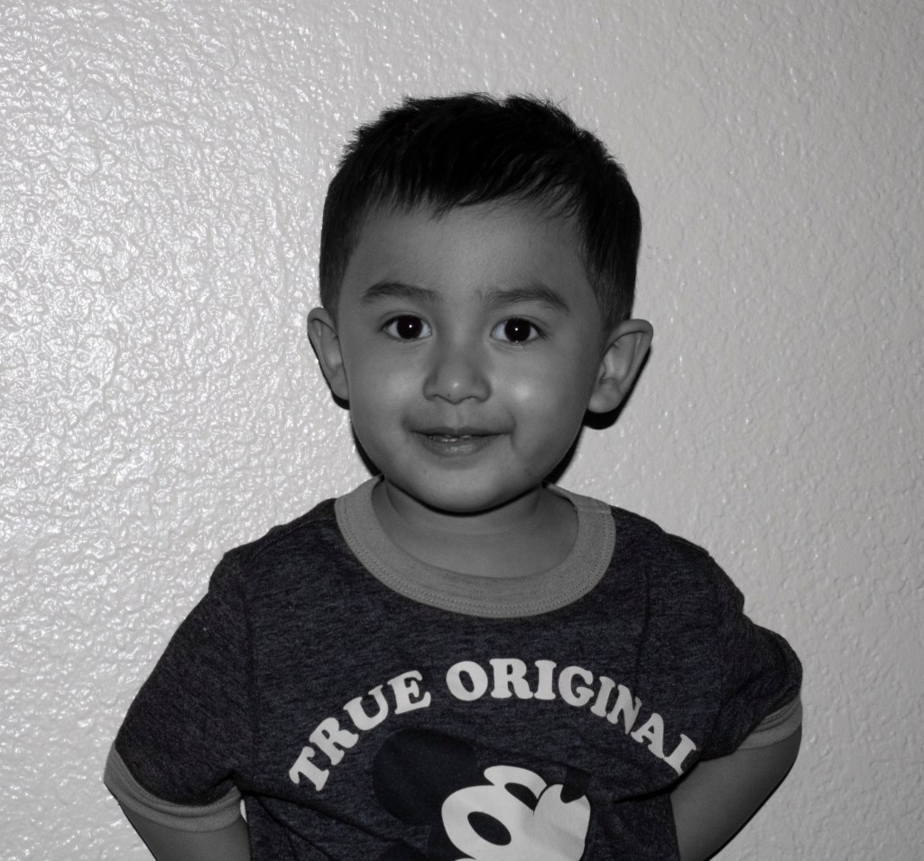 This little one is Logan, also known as my “nephew” and Karla’s son. This picture is an accurate representation on how he looks up to his mom. His mom was next to him posing for her picture and stayed posing so I could take his picture just like his mom. I took this photo on Tuesday evening in his apartment. He was posing in front of a white wall in his living room next to his mom.